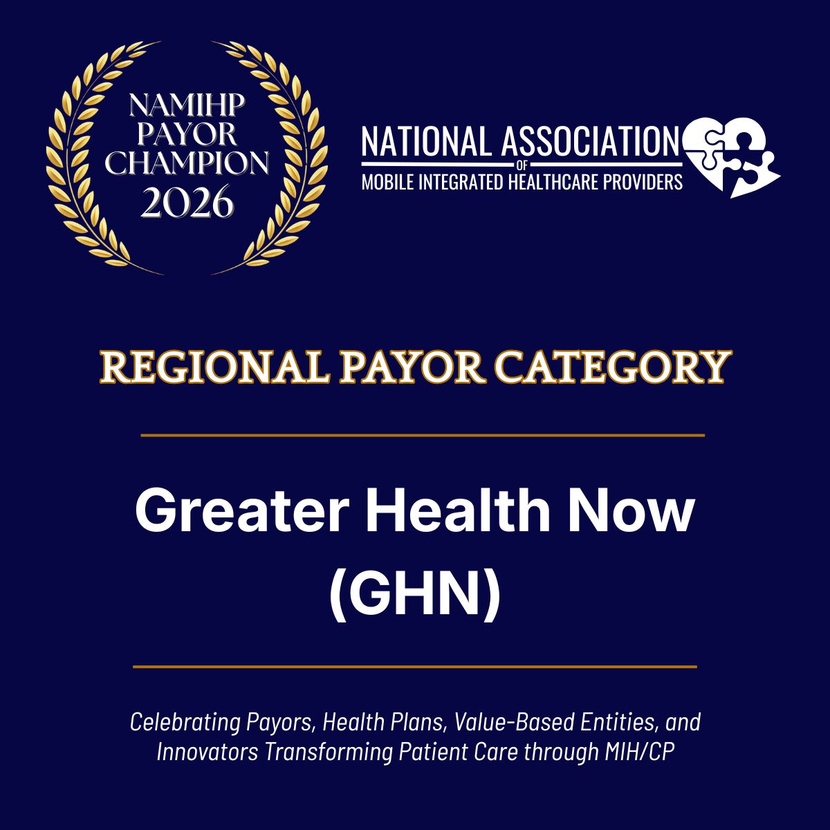 Greater Health Now won the Regional Payor Category at the National Association of Mobile Integrated Healthcare Providers Summit. These awards are for celebrating payers, health plans, value-based entities, and healthcare innovators transforming patient care through MIH/CP. We are honored to be recognized for our work in Mobile Integrated Healthcare. Learn about the other categories and nominees HERE.